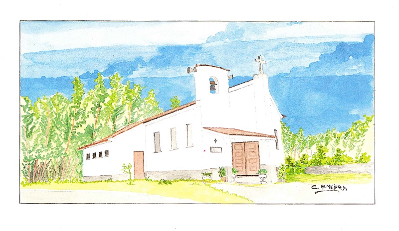 A entrada da Capela possui uma estrutura alpendrada.